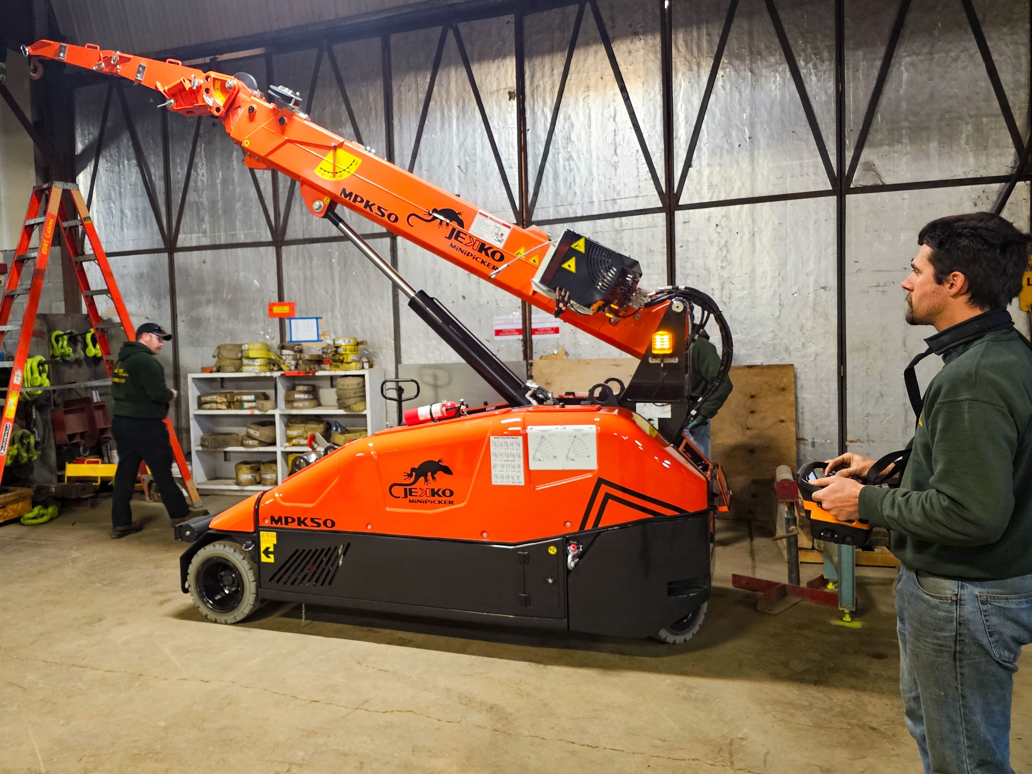 Całe podstawowe wyposażenie mini-żurawi Jekko, od aplikacji po akcesoria umieszczone na wszystkich maszynach
