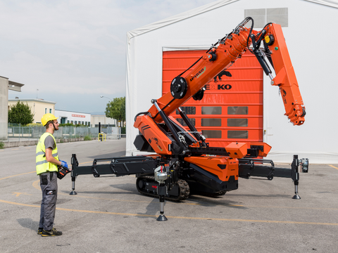 Całe podstawowe wyposażenie mini-żurawi Jekko, od aplikacji po akcesoria umieszczone na wszystkich maszynach